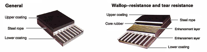 Variety Stand and main index General GB/T9770-2013 Flame retardant MT668-2008 Common fire-retardant GB/T10822-2003 Heat-resistant HG2297-92 Wear-resistant type Abrasion value ≤90mm³ Acid、alkali and oil-resistant HG/T3782-2005 Cold-resistant type HG/T3647-1999 Brittle temperature Items St630 St800 St1000 St1250 St1600 St2000 St2500 St3150 St3500 St4000 St4500 St5000 St5400 Long direction tensile strength 630 800 1000 1250 1600 2000 2500 3150 3500 4000 4500 5000 5400 Max steel rope diameter 3.0 3.5 4.0 4.5 5.0 6.0 7.2 8.1 8.6 8.9 9.7 10.9 11.3 Steel rope gap 10±1.5 10±1.5 12±1.5 12±1.5 10±1.5 12±1.5 15±1.5 15±1.5 15±1.5 15±1.5 16±1.5 17±1.5 17±1.5 Upper coating 5 5 6 6 6 8 8 8 8 8 8 8.5 9 Lower coating 5 5 6 6 6 6 8 8 8 8 8 8.5 9 width